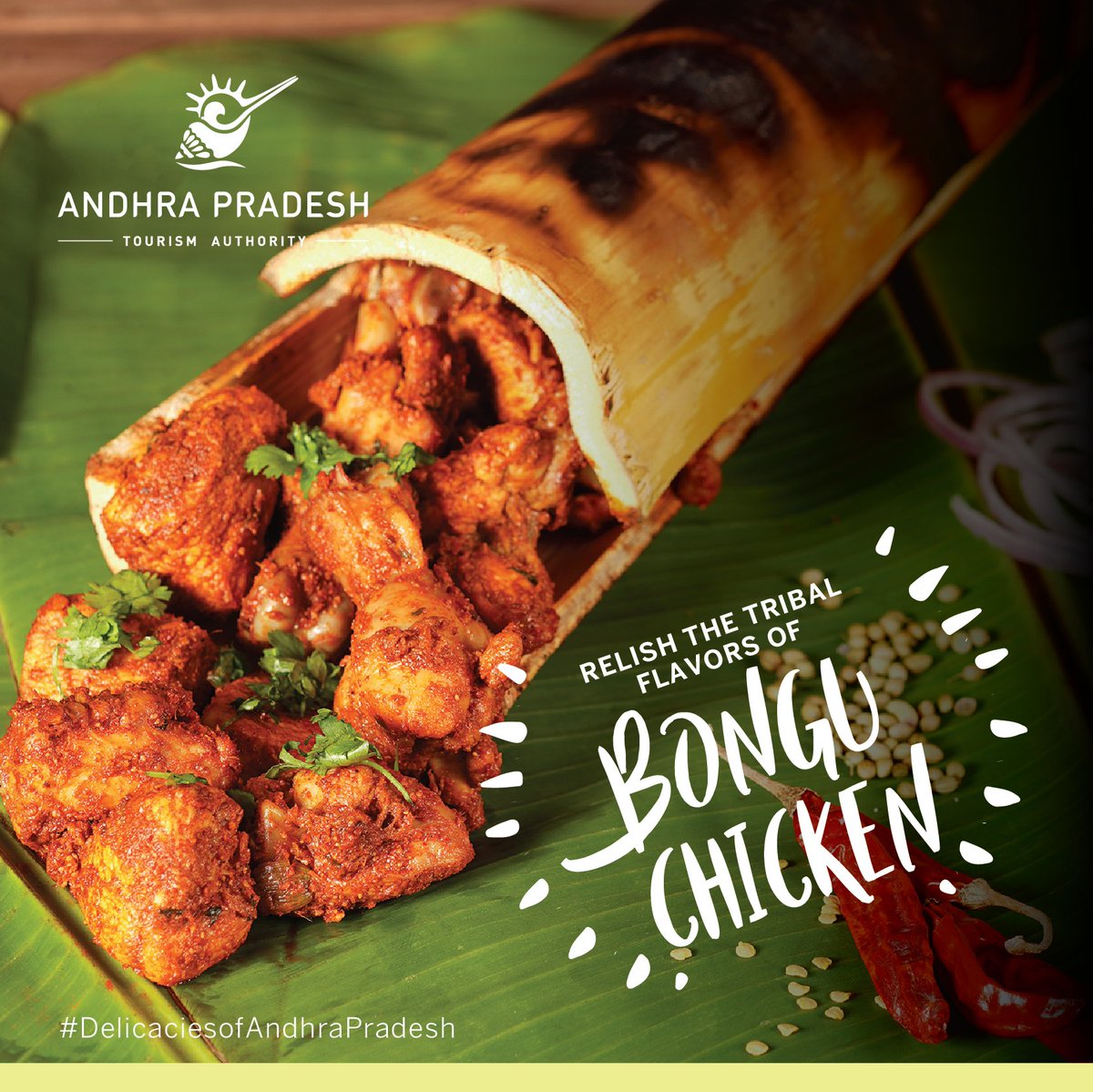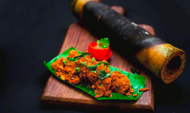 Bongu Chicken, cooked in green bamboo shell is a tribal delicacy. It is popular in Araku Valley of Andhra Pradesh. It is prepared by marinating the chicken in spices, stuffed into bamboo stalk & cooked on firewood. A ready to eat delicacy. Bamboo dishes are an oil free and nutritionally rich dishes.